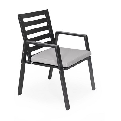 Product Name: LeisureMod Chelsea Modern Patio Dining Armchair in Aluminum with Removable Cushions Set of 2 in Light Grey