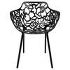 LeisureMod Oyster Set of 2 Modern Cutout Bistro Dining Armchairs - Floral Webbed Indoor/Outdoor Stacking Chairs