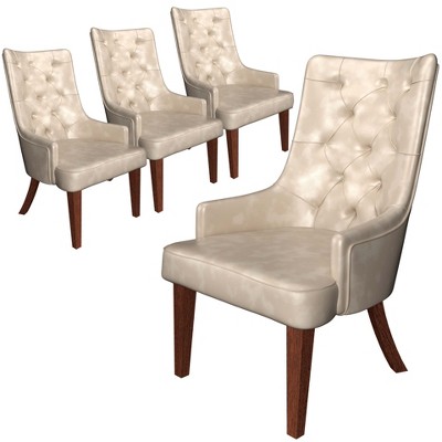 LeisureMod Dining Chair Upholstered in Leather with Wood Legs Spruce Series Set of 4 (Charcoal Grey)