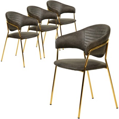 LeisureMod Dining Chair Upholstered in Leather & Velvet, Ergonomic Padded Seat & Back, Durable Stainless Steel Base – Bella Series Accent Armchair