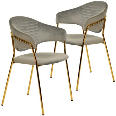 LeisureMod Dining Chair Upholstered in Leather & Velvet, Ergonomic Padded Seat & Back, Durable Stainless Steel Base – Bella Series Accent Armchair