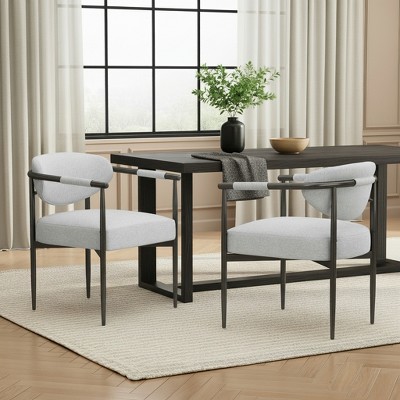 LeisureMod Ervilla Modern Dining Side Chairs Set of 2 – Cozy Upholstered Accent Armchairs with Black Iron Legs, Kitchen, Dining Room, Cafe, Restaurant
