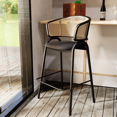LeisureMod Ervilla Wicker Bar Stool with Velvet Seat and Black Steel Frame for Kitchen Island, Dining, Home Bar, Counter, Cafe, Modern Seating - 1 of 4
