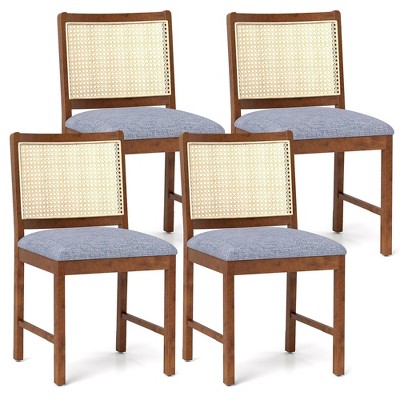 LeisureMod Euston Set of 4 Modern Dining Chairs with Wicker Back and Velvet Seat, Indoor Kitchen, Dining Room, Home, Contemporary Side Chair Seating