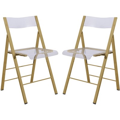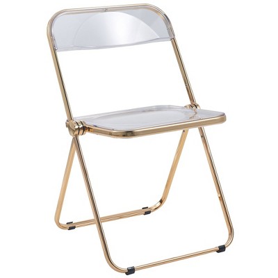 LeisureMod Lawrence Acrylic Folding Dining Chair with Gold Metal Frame, Modern Compact Lightweight Design for Kitchen, Office, Balcony, Event Seating