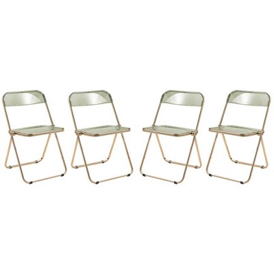 LeisureMod Lawrence Acrylic Folding Dining Chair with Metal Frame Set of 4, Compact Lightweight Design for Kitchen, Office, Balcony, Event Seating