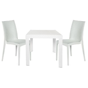 Product Name: LeisureMod Mace 3-Piece Outdoor Dining Set with Plastic Square Table and 2 Stackable Chairs with Weave Design in White