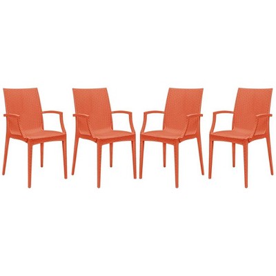 LeisureMod Mace Outdoor Plastic Dining Chair Set of 4 with Stackable Design, Weather-Resistant Frame for Use on Balcony, Garden, Poolside, or Cafe
