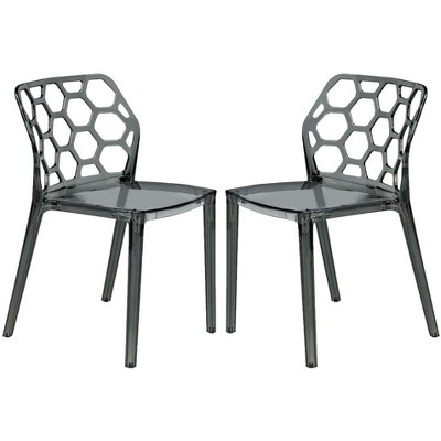 LeisureMod Marion Acrylic Modern Chair Set of 2 with Molded Seat and Chrome Legs, Ideal for Dining Room, Kitchen, Office, Lounge, Cafe, or Workspace