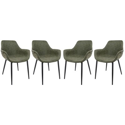 LeisureMod Markley Faux Leather Dining Chair with Arms and Gold Metal Legs, Modern Upholstered Design for Kitchen, Dining Room, Office, or Lounge