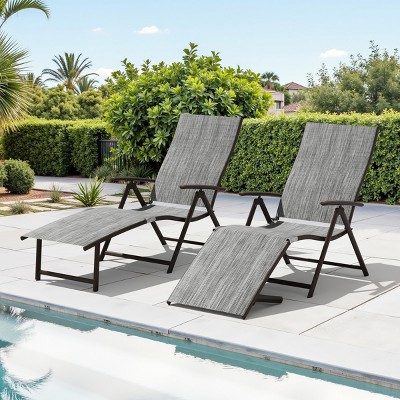 LeisureMod Marlin Modern Grey Aluminum Patio Chaise Lounge Chair with Arms and Square Fire Pit Side Table, Outdoor Seating for Patio, Deck, Poolside