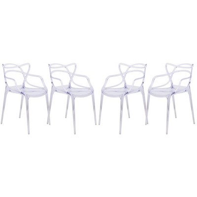 LeisureMod Murray Mid-Century Modern Dining Chair - Waterfall Edge Design Acrylic, Ergonomic and Stackable, Set of 4