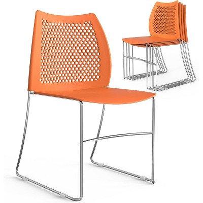 Product Name: LeisureMod Murray Modern Plastic Dining Chair, Set of 4, Transparent Orange