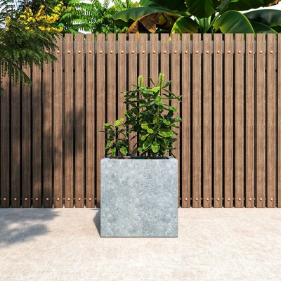 LeisureMod Terra 20" Tall Square Fiberstone Planter Pot with Drainage Holes, Weather-Resistant for Indoor/Outdoor Use