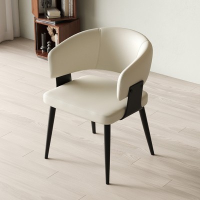 Elevate your space with the Aspen Dining Chair, blending style and practicality. Designed with a curved backrest for optimal posture support and an open-back for enhanced breathability, it ensures comfort during extended sitting. The gently sloped seat edge reduces leg pressure and promotes circulation. Strong iron legs, finished with a powder-coated layer, support up to 330 pounds while resisting scratches and rust. Upholstered in high-quality leather with detailed topstitching, it’s durable and easy to clean. The high-density foam cushioning adds plush comfort. Lightweight and easy to move, it fits seamlessly into any setting. Rubber pads protect floors and minimize noise, while the fully assembled chair is ready for immediate use. Transform your seating experience with this blend of elegance and functionality.