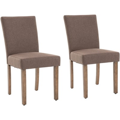LeisureMod Upholstered Dining Chair with a Curved Open Back Design and Powder-Coated Iron Legs Set of 4 Amalfi Collection in Light Brown
