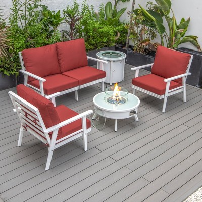 Product Name: LeisureMod Walbrooke Modern Polyester 3-Piece Patio Set with White Aluminum Frame and Removable Cushions (Red)
