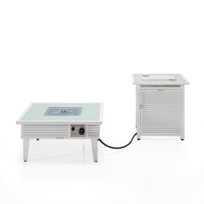 Product Name: Leisuremod Walbrooke Outdoor Patio Aluminum Square Slats Design Fire Pit Side Table with Lid and Fire Glass in White