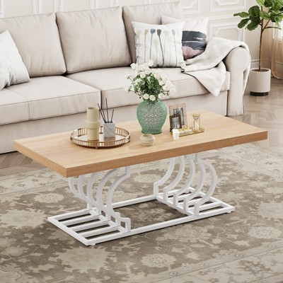 LeisureMod Walden Rectangular Coffee Table with Powder-Coated Steel Frame – Modern Accent Table for Living Room, Office, Lounge, or Cafe
