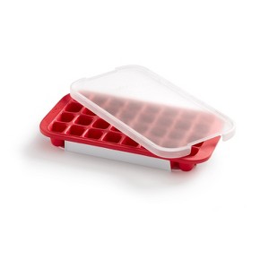 The Lekue Industrial Ice Cube Tray is constructed of flexible silicone, allowing you to easily extract the ice cubes. The tray makes 32 square ice cubes at once and includes a rigid tray that allows you to easily move and stack the trays in the freezer.