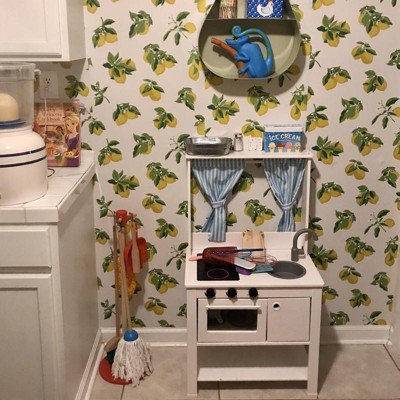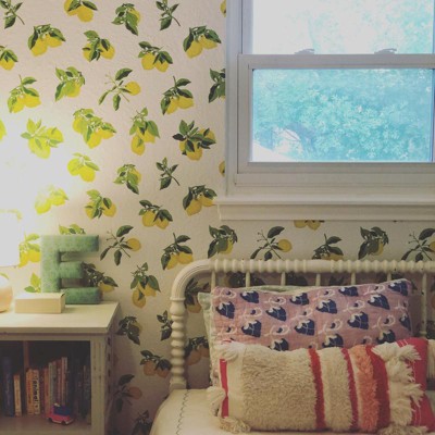 Super cute wallpaper! I used in my kitchen where I keep the kids kitchen set. I did not give five stars because I had to buy two rolls for a very small wall and it was extremely hard to line up the lemons. They are not perfect, but we still love the look and that it's not permanent. Added the pop of color we were looking for.