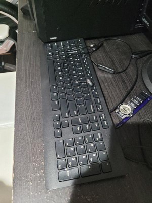 Enjoy a reliable and hassle-free typing with Lenovo Essential Wired Keyboard. It is durable and built to last with up to 10M clicks for each key cap, spill resistance and wired USB connectivity. Typing has never been this good with quiet key caps and adjustable feet for all day comfort. Features & Benefits Full-size 3-zone layout Quiet island style low profile keycaps Wired USB-A connectivity (1.8 m) Durable with to 10 M clicks Tilt adjustable feet Spill resistant