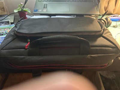 I bought this laptop bag for my work Thinkpad laptop and to carry around between work and home. So far it’s great. Like the separate components. Love the layout and combination of red and black.