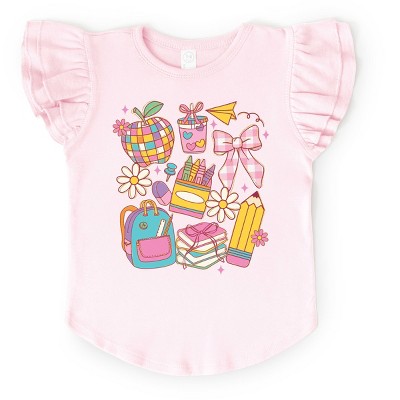 Leo the Truck Palm Leaves and Floral Outline - Flutter Sleeve Graphic T-Shirt