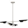 - Brushed nickel finish is highlighted by matte black metal shades