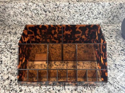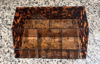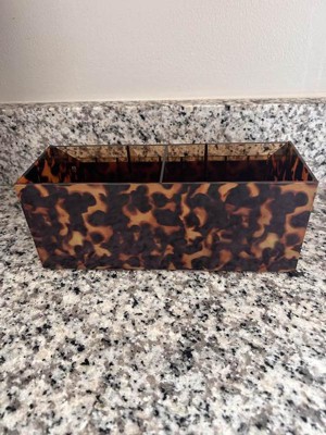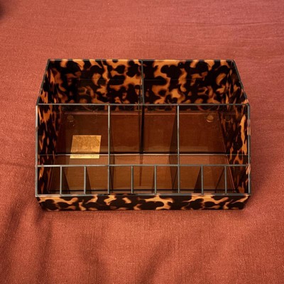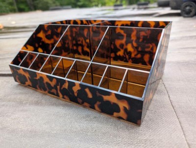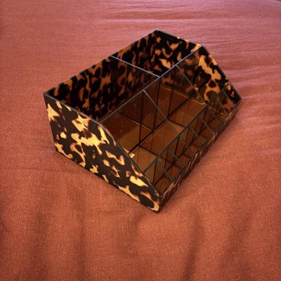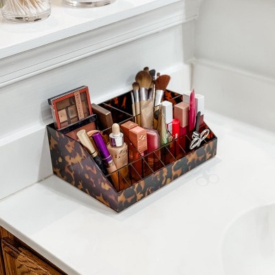 Organize your makeup essentials in a stylish way with the Leopard Print Makeup Organizer from Threshold™. This printed makeup organizer features multiple divided compartments to help keep brushes, makeup and other accessories separate and handy in one spot. Made with an acrylic frame, this makeup organizer is covered with leopard print to add an on-trend appeal to your vanity, bath space or any other area.