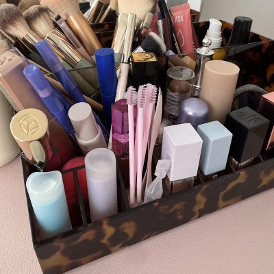 This organizer has so many different compartments it fit all of my makeup with plenty of room for more. Looks so cute on the counter!