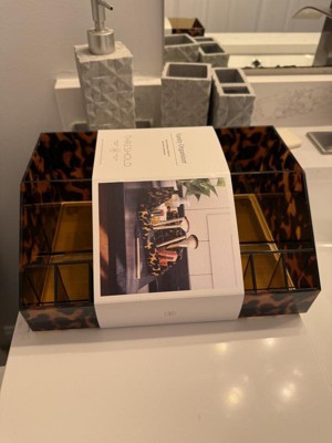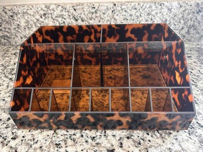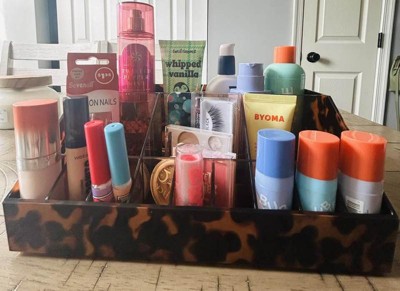 I have a lot of beauty products so this makeup organizer was perfect for me! I love the leopard print, it adds such a cool style to the organizer. The organizer has multiple divided compartments providing plenty of room for all your essentials. This organizer is perfect for makeup, beauty products, brushes, etc. I love that all of my items are now nicely organized in one spot. If you are looking for a stylish makeup organizer, I recommend this one by Threshold!