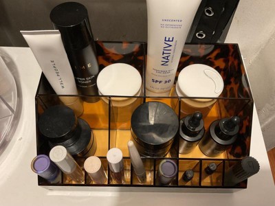 The Threshold vanity organizer is both attractive and well thought out. The tortoiseshell print is a nice alternative to the clear dividers and bins you usually see, but it still works as a neutral. There are 14 sections in 3 different sizes, so there’s a place for everything from lipsticks and pencils to large brushes and bottles.