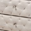 Soft upholstery and chic tufting make the Lepine nightstand a stylish addition to any bedside. Constructed from wood, the Lepine is upholstered in a resilient, neutral polyester fabric and padded with foam for a cozy feel. Two drawers, adorned with silver metal knobs, provide storage space for headphones, lotion, and more. Each drawer face showcases elegant diamond-patterned tufting. plastic legs complete the look. The Lepine nightstand is made in Malaysia and requires assembly. Dimensions: 19.9" High x 22.4" Wide x 17.1" Deep; Drawer: 4.25" High x 15.25" Wide x 13" Deep; Legs: 1" High