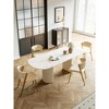 High-Quality: The oval tabletop is crafted with easy-to-clean artificial marble slate, The slate tabletop and titanium gold double pedestal give a durable trend. The safety rounded corners are anti-knock, the radian is natural, and the craftsmanship is ingenious to prevent bumps and injuries.