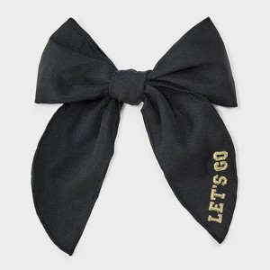 Go for the Game Day win in a stylish look with the Let's Go Game Day Hair Bow from Universal Thread™. This bow barrette hair clip features the embroidered text "Let's Go" to add spirit to your Game Day ensemble. Suitable for all types of hair, this bow hair clip is great for ponytails and many other hair styles.