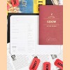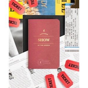 The Show Passport contains 20 entry logs to record details of each show or performance attended. Each entry page is accompanied by a blank page for notes, scenes, drawings, or mementos like ticket stubs or photos. The back pages of the Show Passport include bucket lists, best-of lists, and info pages.