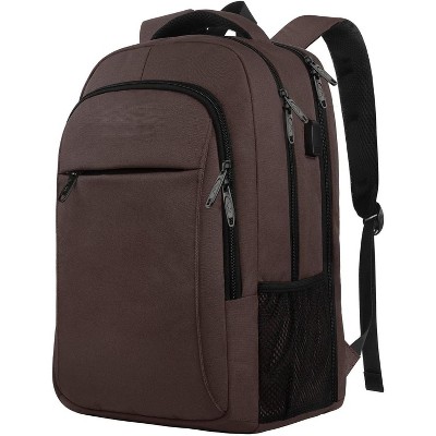 LEVEN SIXTEEN 15.6" Leather Laptop Backpack for Women, USB Port, Professional Travel Bag Beige White - Brown-17 Inch 17 Inch