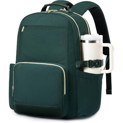 LEVEN SIXTEEN 15.6" Leather Laptop Backpack for Women, USB Port, Professional Travel Bag Dark Green-15.6 Inch 15.6 Inch