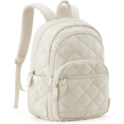 LEVEN SIXTEEN 15.6" Water-Resistant Cute Quilted Laptop Backpack for Women Beige