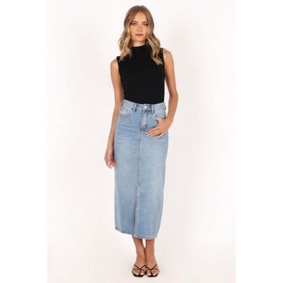 LEVEN SIXTEEN High Waist Split Denim Midi Skirts Light Gray M