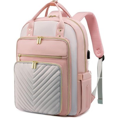 LEVEN SIXTEEN Waterproof 15.6" Laptop Backpack for Women, Work & Travel Gray - Pink-15.6 Inch 15.6 Inch