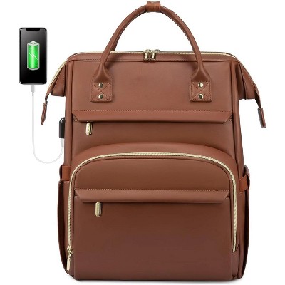 LEVEN SIXTEEN Travel Laptop Backpack, Anti-Theft Slim Water Resistant Bag with USB Port for 15 Dark Brown-17 Inch 17 Inch