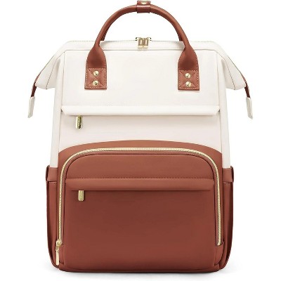 LEVEN SIXTEEN Waterproof 15.6" Laptop Backpack for Women, Work & Travel Beige - Black - Chestnut Brown-18 Inch 18 Inch