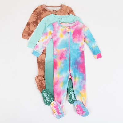 - 3-Pack Baby Footed Pajamas Set – Includes Ombre Tie Dye Pink, Tie Dye Purple Mix, Tie Dye Swirl Girls