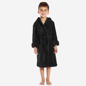 Leveret Kids Fleece Solid Color Hooded Robe - 1 of 4