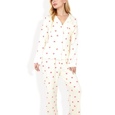Leveret Women's Cotton Top & Fleece Pants Heart L