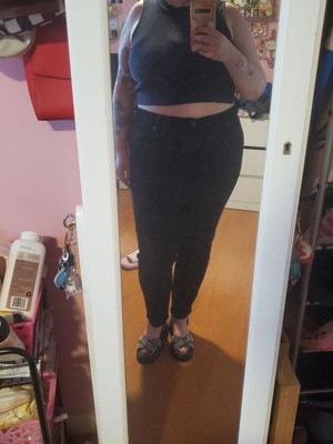 [This review was collected as part of a promotion.] I love these jeans so much! They have the perfect high rise that sucks everything in. The length isn’t too terribly long (I’m short, so most jeans are way too long). The black color is wonderfully dark and not faded. My only complaint is that the front pockets are tiny. They won’t even hold my iPhone.