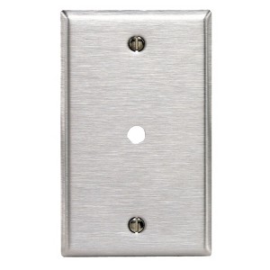 1-Gang .312 Inch Hole Device Telephone/Cable Wallplate, Standard Size, 430 Stainless Steel, Box Mount, - Stainless Steel, Leviton Combination Wallplates come in a variety of configurations and gangsand are available in a broad selection of materials including, aluminum, brass, stainless steel and plasticand in an assortment of colors. If you have a unique application, Leviton can also customize a wallplate for a specific job.
