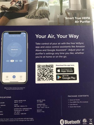 • Smart Control: Connect to third-party voice assistants, adjust settings, and monitor filter life with the VeSync app.